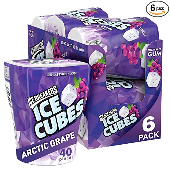 ICE BREAKERS ICE CUBES ARCTIC GRAPE With Cooling Crystals, Made with Xylitol Sugar Free Chewing Gum Bottles, 3.24 oz (6 Count, 40 Pieces)